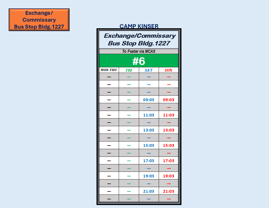 CAMP KINSER BUS STOP LOCATION