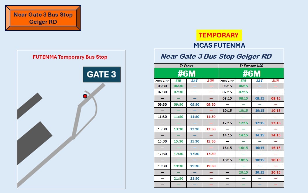 Once the Futenma Gate 1 reopens, the schedule will revert to the original schedule.